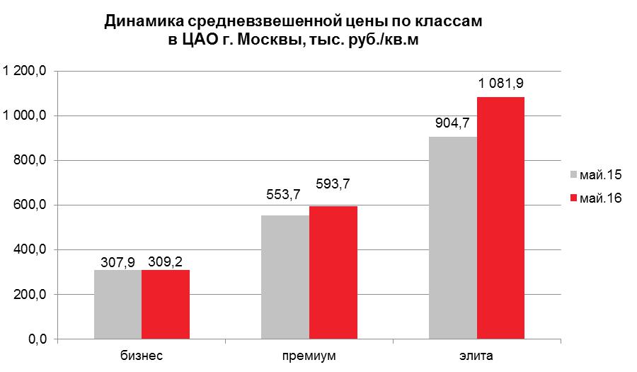 Эксперты компании Est-a-Tet в области аналитики и консалтинга установили, что по итогам мая 2016 года в ЦАО сократился общий объем предложения на 9.7%, однако сейчас на рынке «первички» округа существует 82 новых проекта, а средневзвешенная цена выросла на 7.8% с показателем, на текущий момент равным 679.6 тыс. рублей за «квадрат».