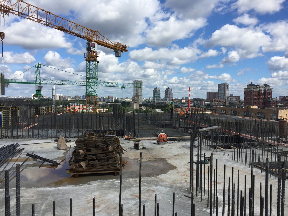 На стройплощадке второго корпуса ЖК «Орехово-Борисово», который располагается рядом со ст. м. «Домодедовская», к завершению подходят работы по монтированию второго этажа.